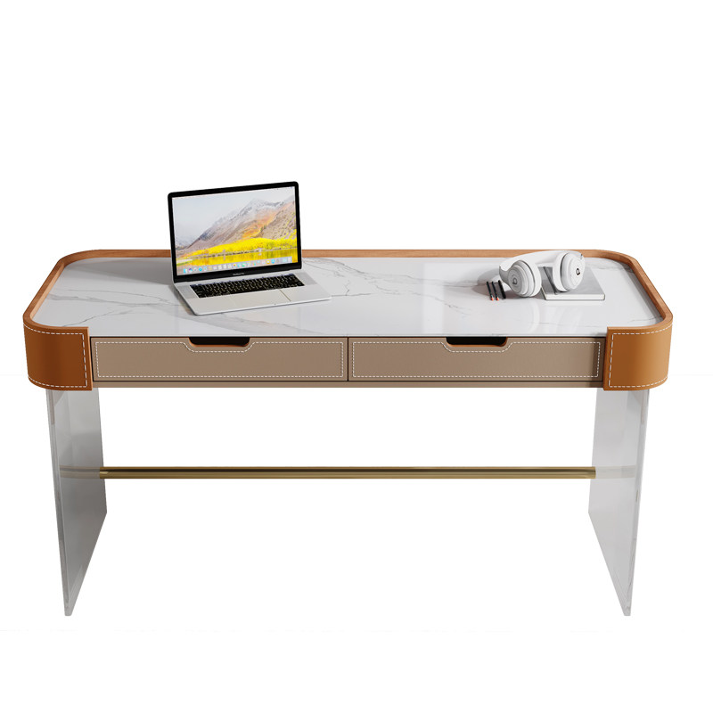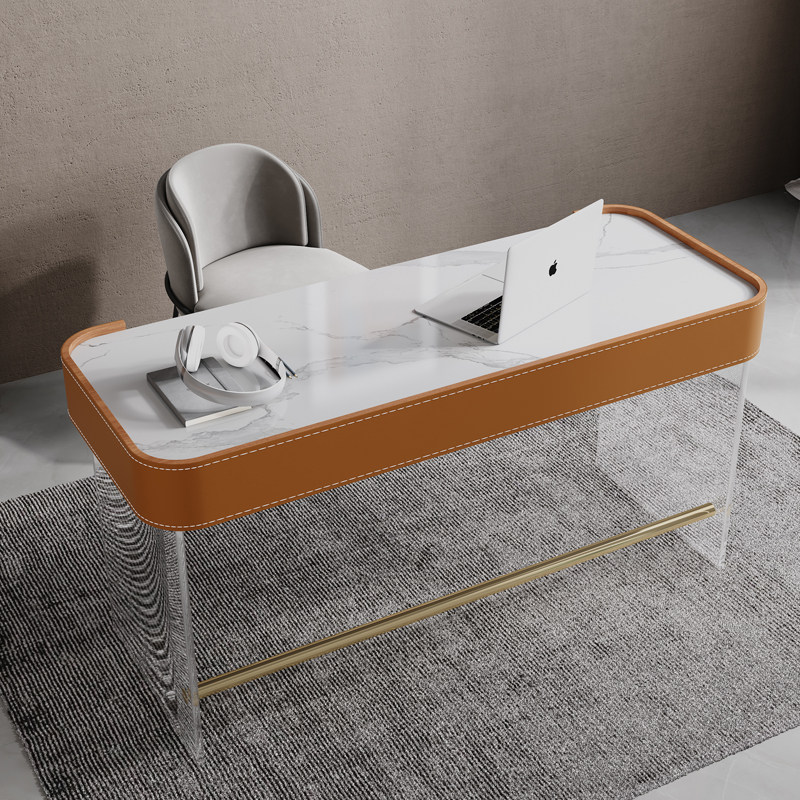 Italian style acrylic desk saddle leather home study desk small apartment bedroom light luxury rock board computer desk