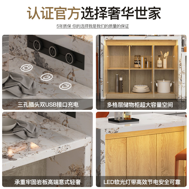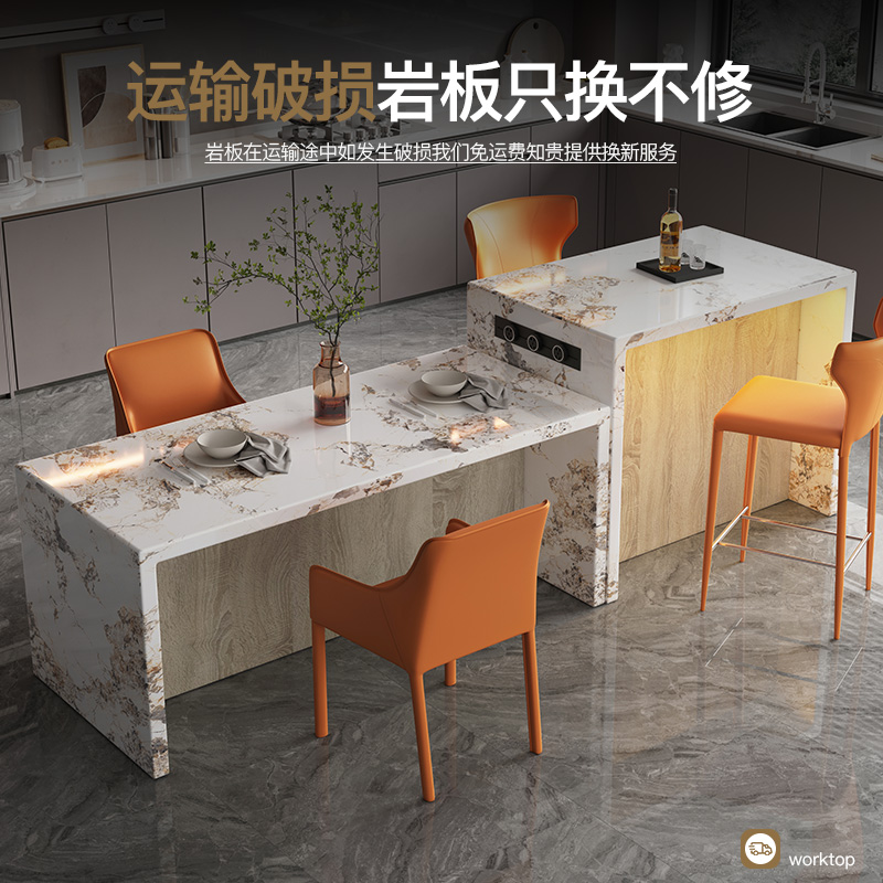 Light luxury slate island dining table integrated acrylic suspension dining table and chair combination multi-functional cooking bar customization