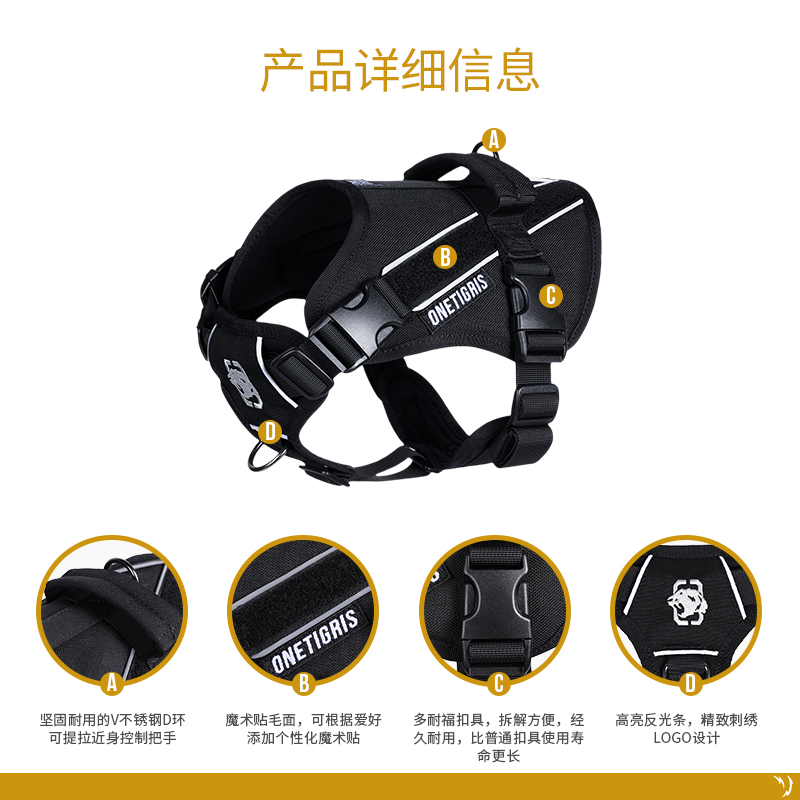 One tiger (k9) dog traction rope vest type medium and large dog tactical dog chest holding baby bag border collie golden retriever walking dog chain