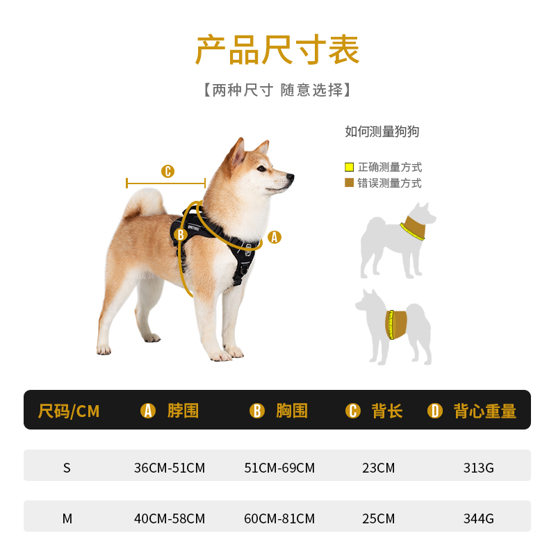 S bust 51-69cm recommended weight 7-18kgM bust 60-81cm recommended weight 16-30kg