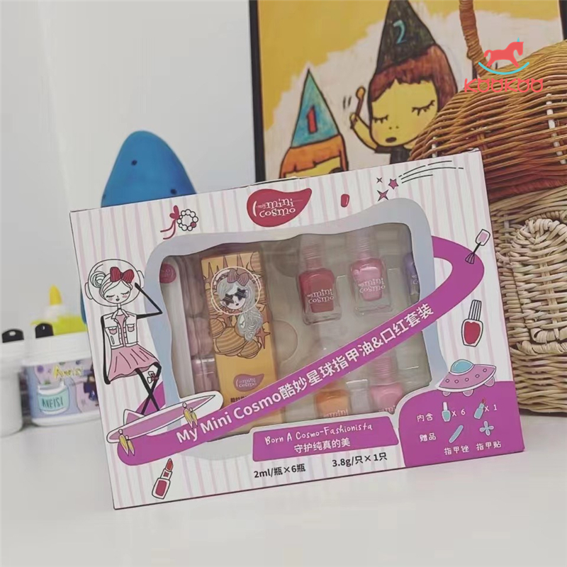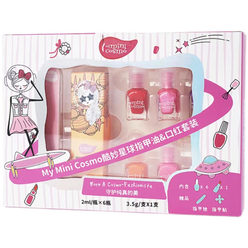 my mini cosmo cool meow planet nail polish lipstick set children can tear off safe and non-toxic dress up