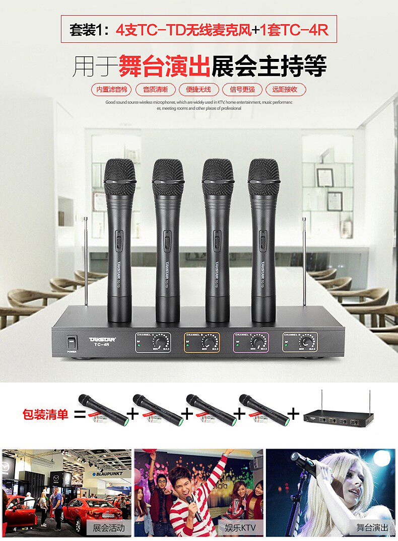 Takstar wins TC - 4R tow four V wireless microphone handheld folder meeting