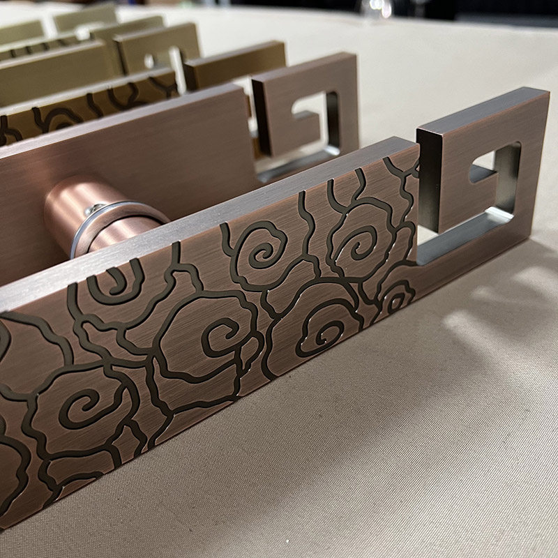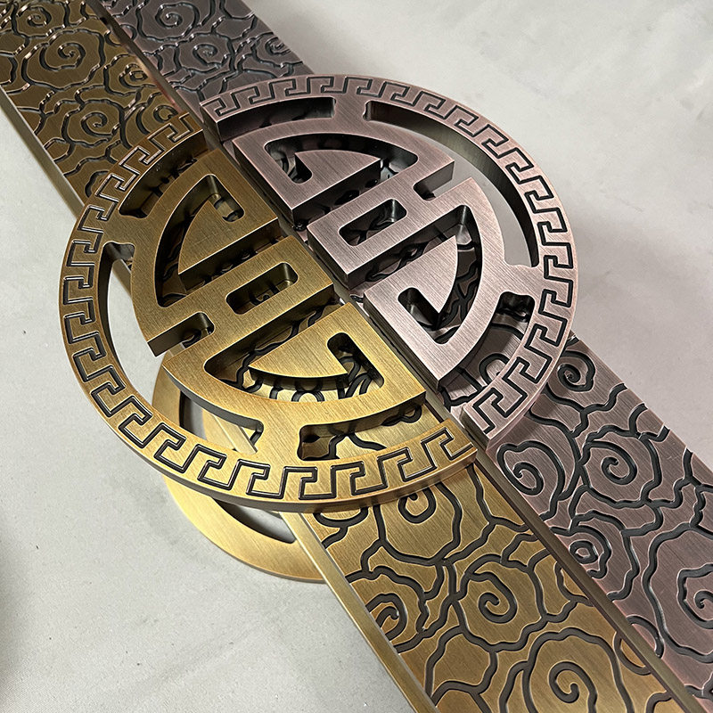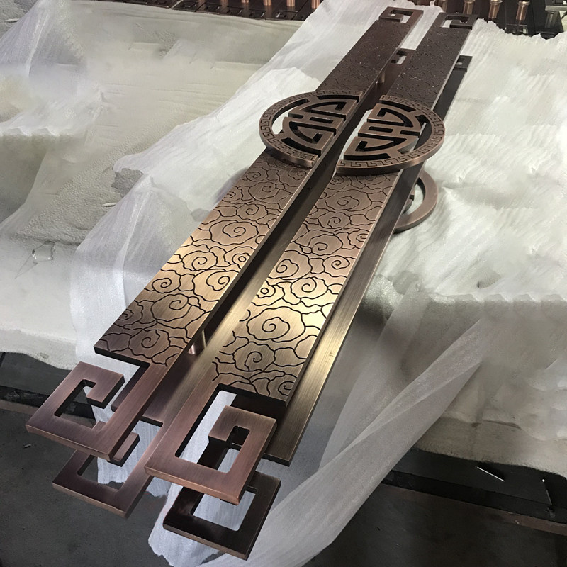 Chinese style Xiangyun bronze door handle luxury hotel teahouse glass door handle wooden door carving long armrest handle