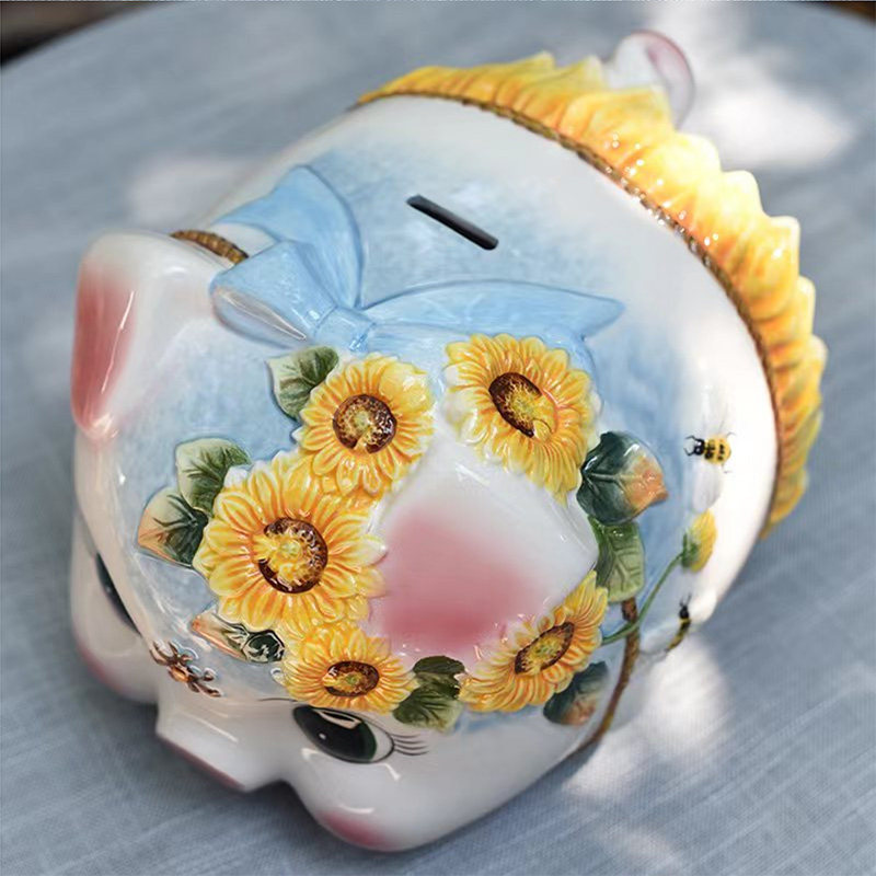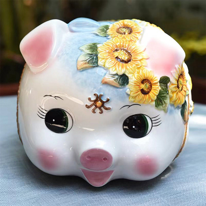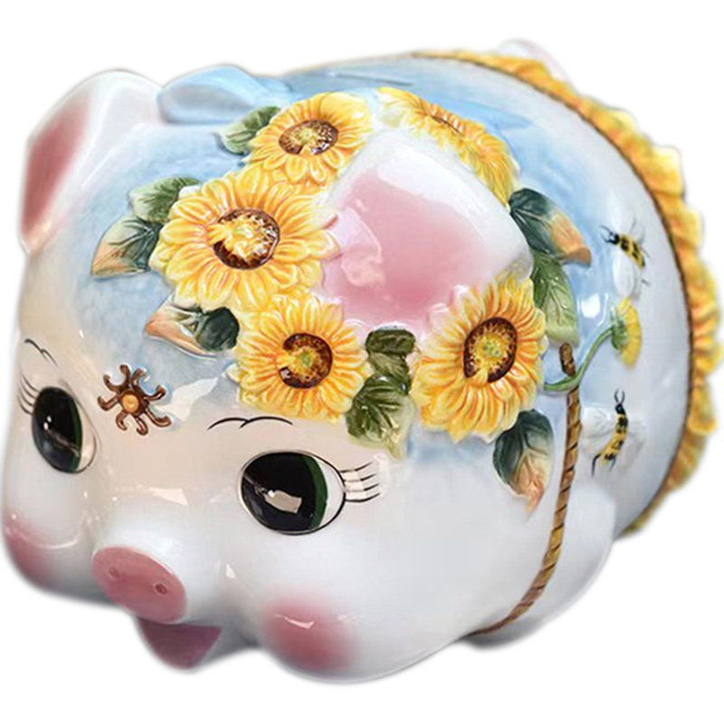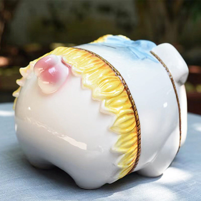 Home Living Room Ceramic Sunflower Pig Deposit Pot Swing Piece Sunflower Deposit Money Silo Xuan Guan Wine Cabinet Adornment Gift