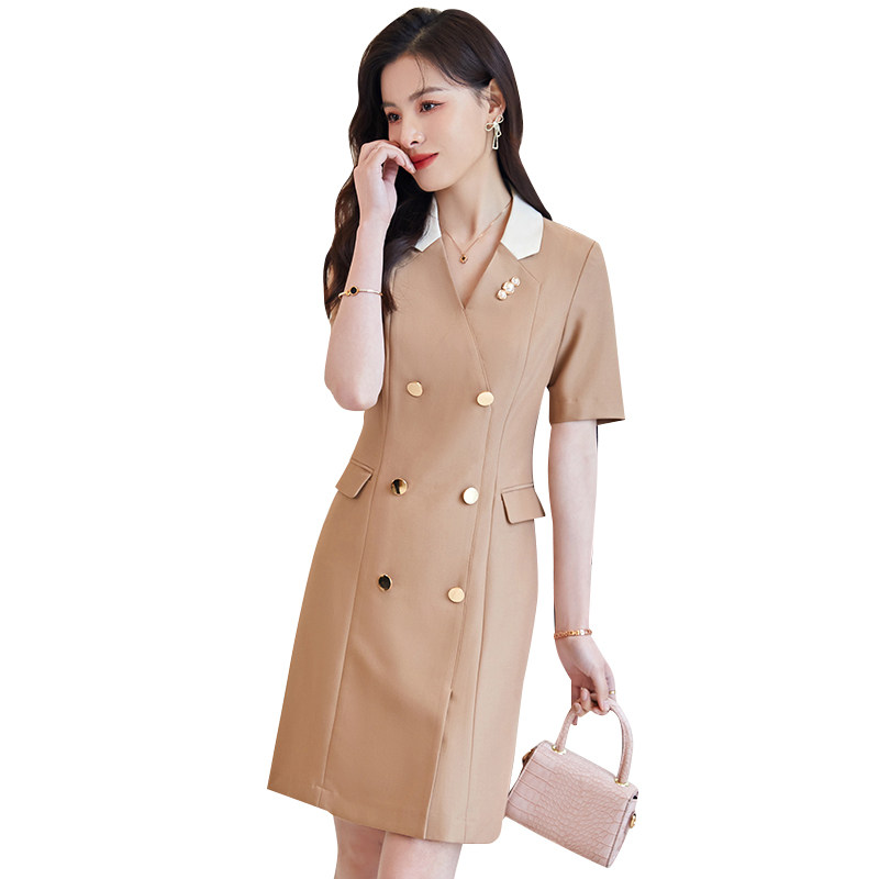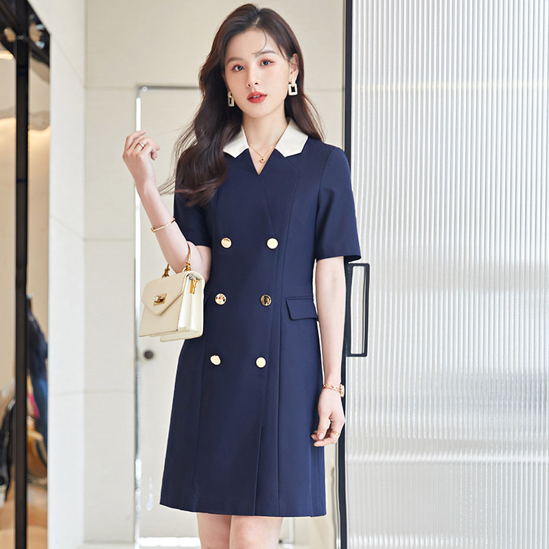 Short-sleeved work clothes, women's summer thin section, waist and thin temperament goddess fan jewelry store front desk work clothes