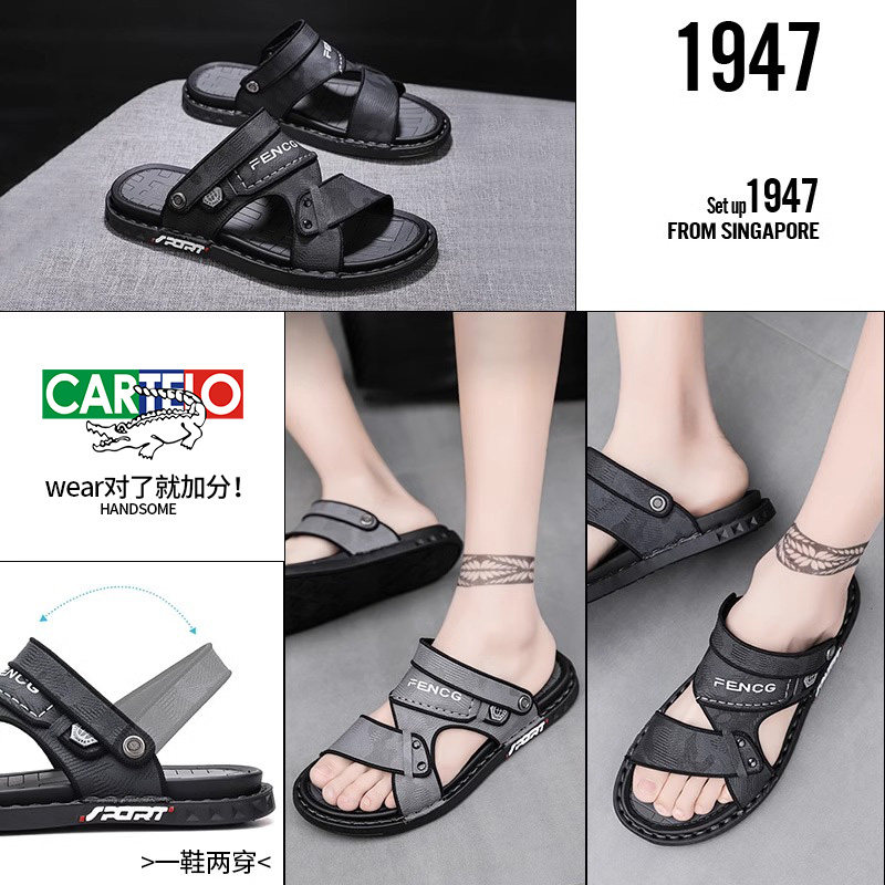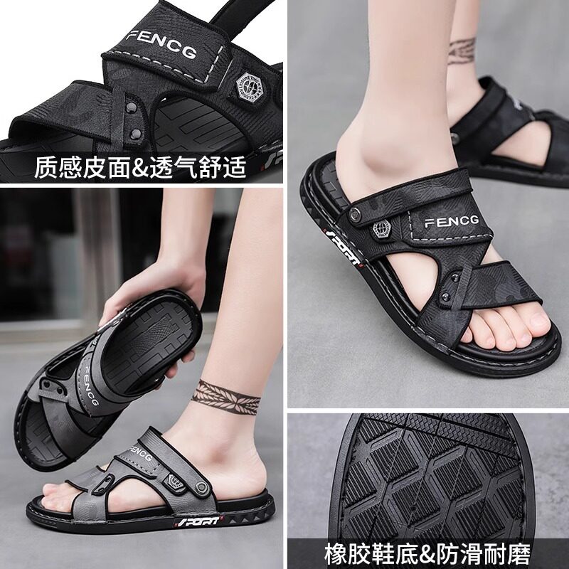 Crocodile sandals men's summer driving outside wearing dual-use non-slip beach men cool slippers casual soft-bottom slippers-Taobao