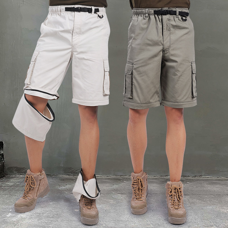 Summer Speed Dry Slim Fit Pants Male Casual Loose Seven-minute Pants Breathable Multi-Pocket Sports Shorts Detachable Workwear Pants