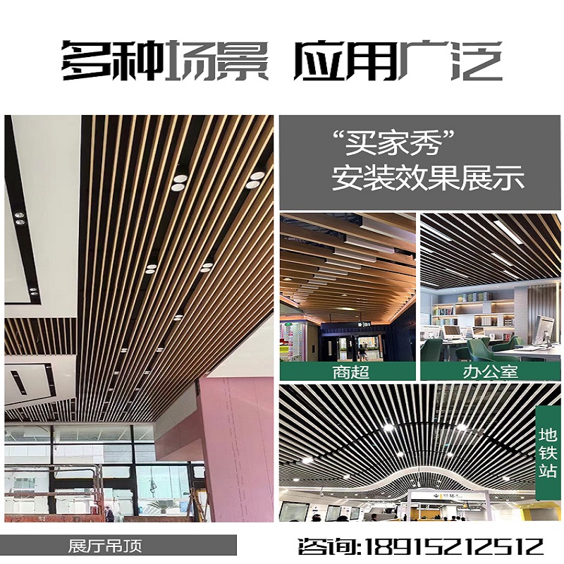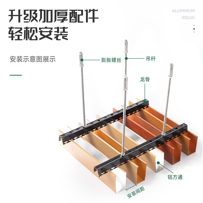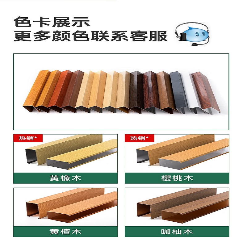 Aluminum square ceiling wood grain aluminum grille spot aluminum square pipe partition u square-pass office ceiling material Self-installed