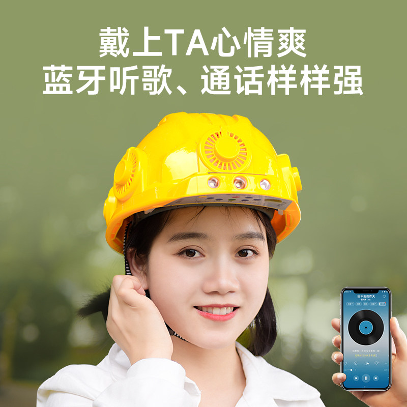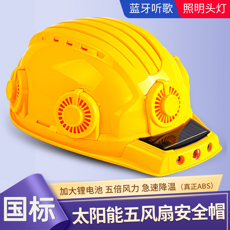 Construction site hard hat solar with fan national standard certification cooling sunshade sun protection hard hat smart bluetooth with headlight