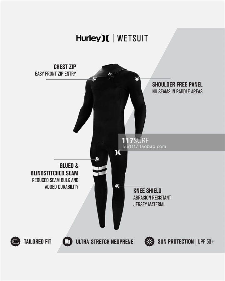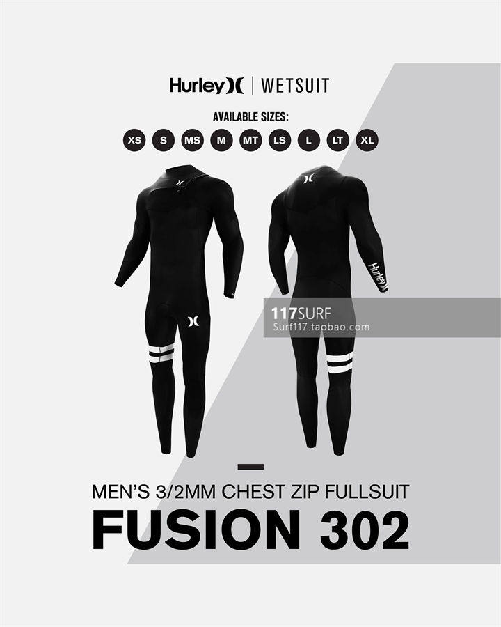 Hürley Surfing Anti-chilling clothes Mens Fusion 3 2MM CHEST ZIP FULSUIT-Taobao