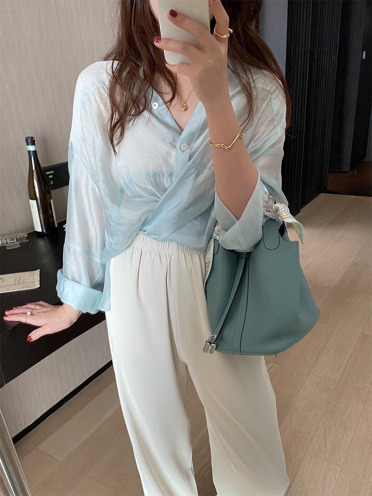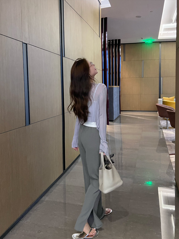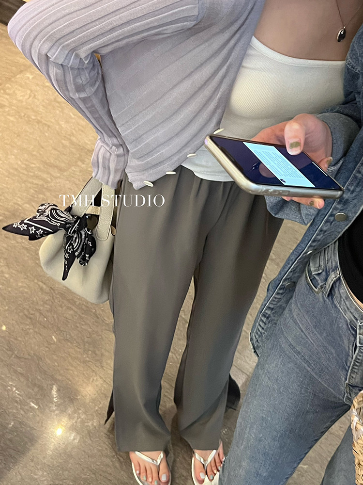 TMH STUDIO Qingti Ice American Straight Casual Pants Women's Thin Section Slit Trousers Drape Mopping Pants Summer