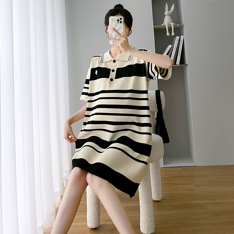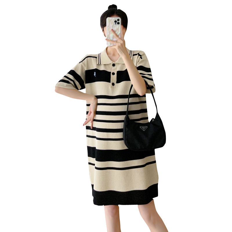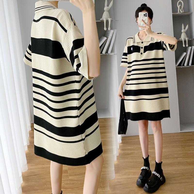 Pregnant women summer dress dress summer thin section short sleeve Polo summer skirt fashion large size net red maternity dress summer tide