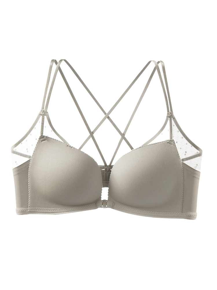 Front button underwear woman gathered uncaesthetically Japanese light wood cotton and sexy steel-free ring bra
