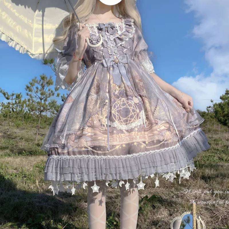 Loretta skirt Lolita Stars Fish Bones Brace Rich silk with adjustable violent floral wedding lining without deforming summer-Taobao