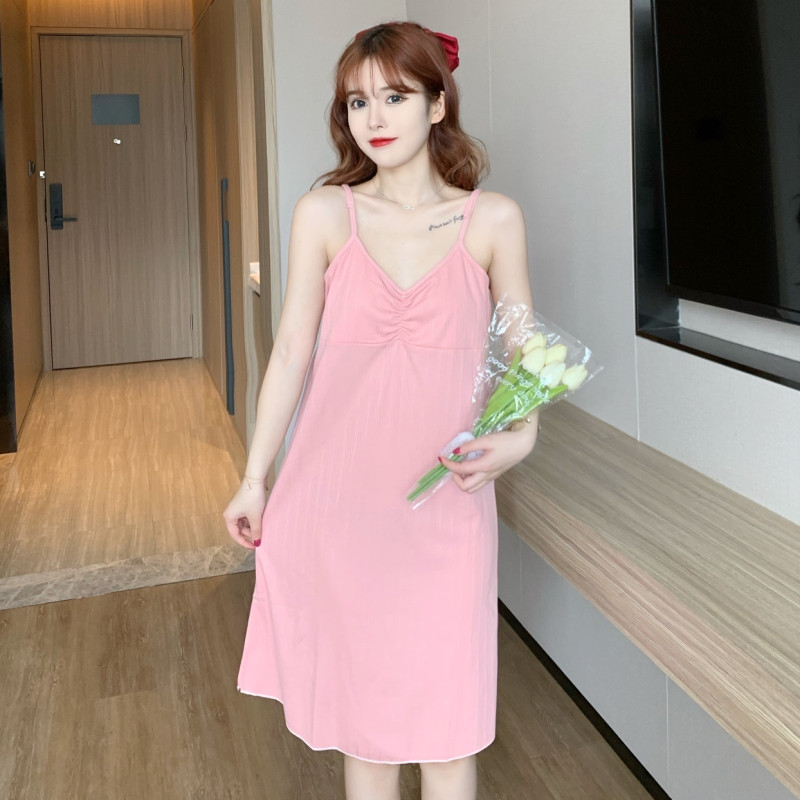 Sling nightdress women's summer thin section comes with chest pad Korean version sweet and sexy 2022 new wear-free bra pajamas