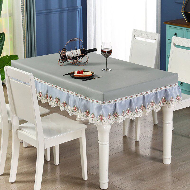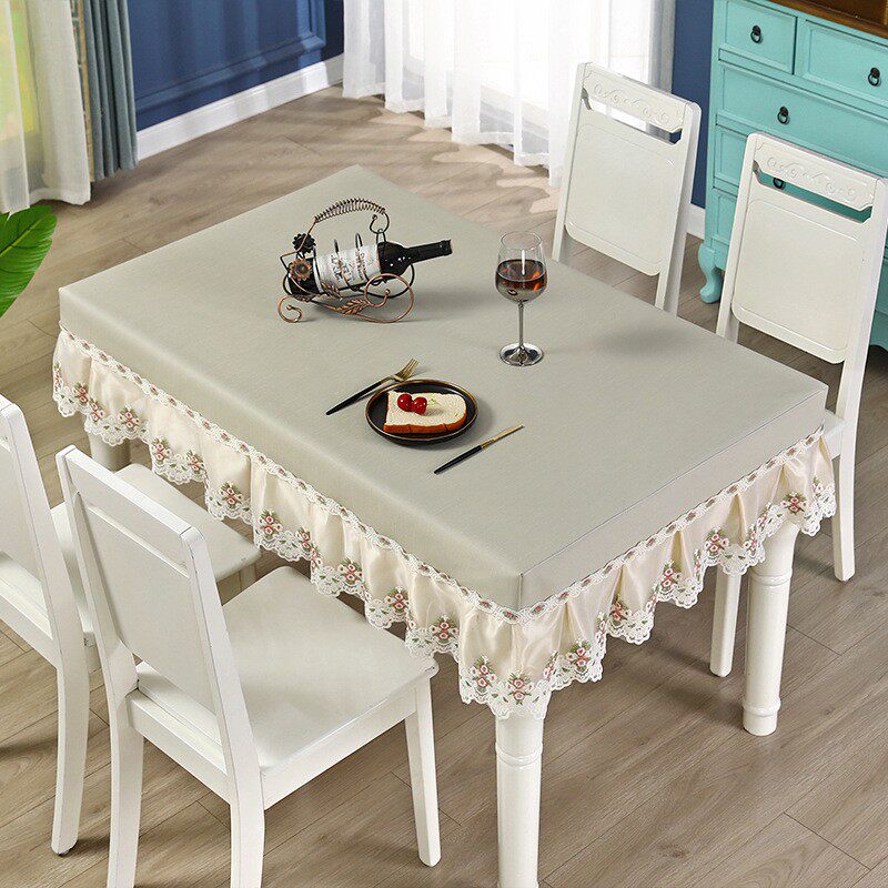 Nordic living room wash-free tablecloth simple rectangular embroidery lace coffee table cloth waterproof dining table tablecloth chair cover set