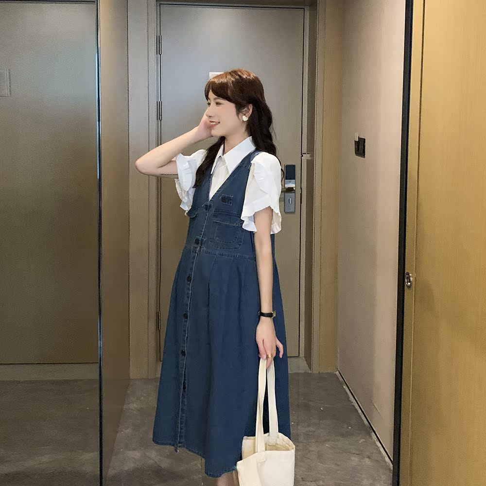 WAN Beauty Denim Mellow Fashion Suit ~ Minus Age Port Taste Shirt Denim Vest Dress Little Sub Gestational Summer