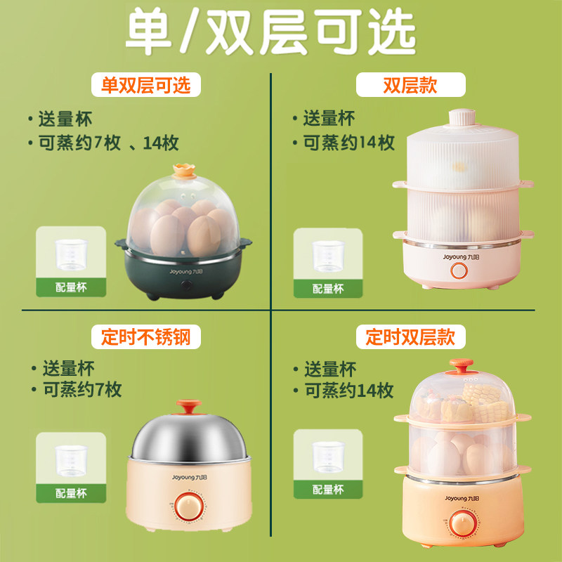 Single-layer model can cook 7 pieces Double-layer model can cook 14 pieces Timing single-layer model Timing double-layer model Pink double-layer model White single-layer model White double-layer model