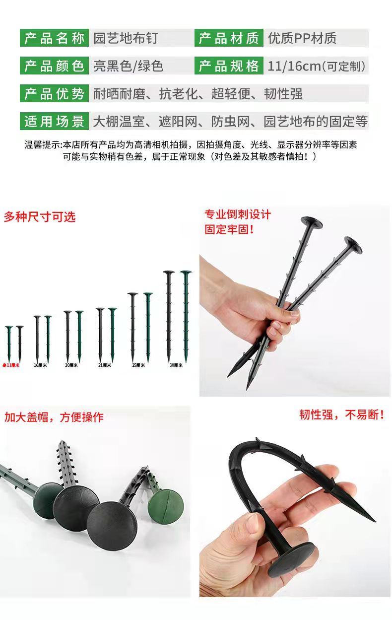 Plastic ground nail with coarse long pull nail greenhouse rural fields black division grass pin pin high quality