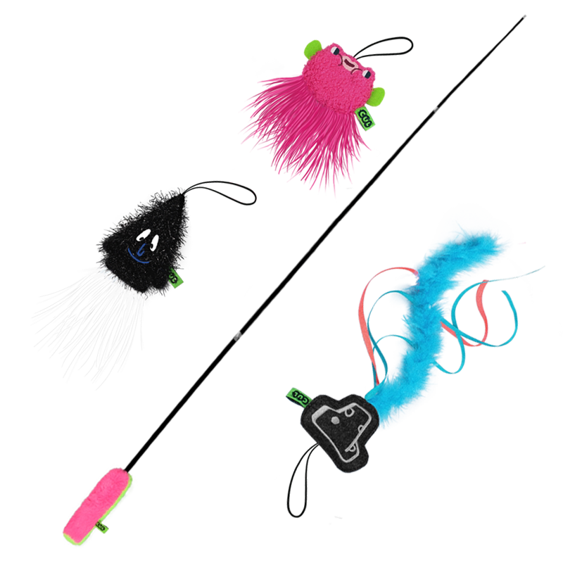 CUL cat telescopic funny cat stick long rod bite-resistant cat toy cat replacement head fairy stick to relieve boredom pet supplies