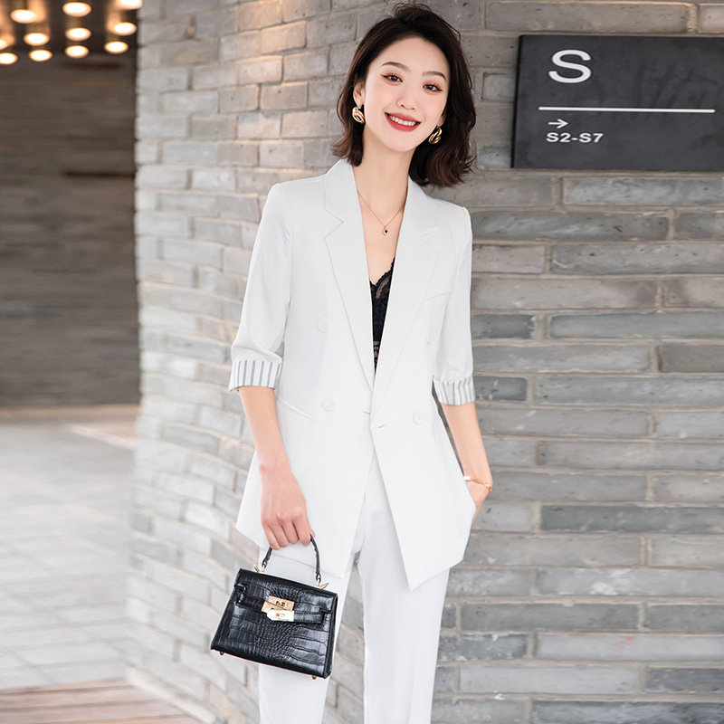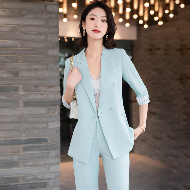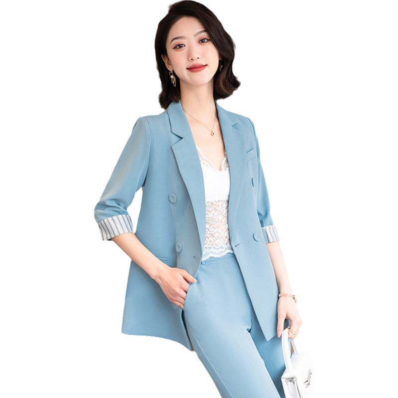 Blue suit jacket women's summer thin three-quarter sleeves loose temperament net red fried street casual small suit summer