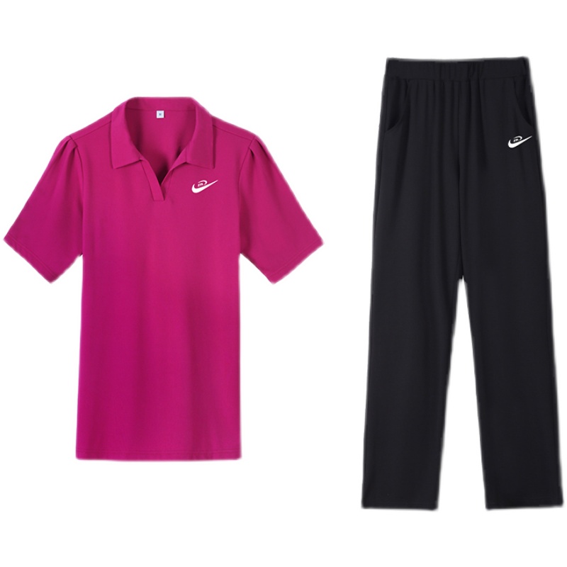 Hong Kong famous brand sports suit women's summer ice silk cotton short-sleeved casual wear thin section breathable thin two-piece set