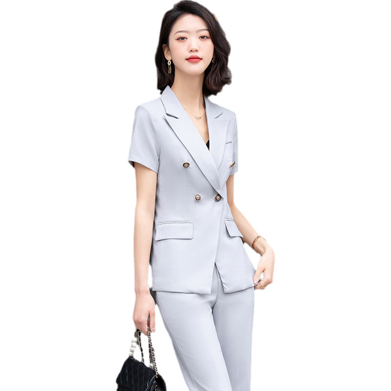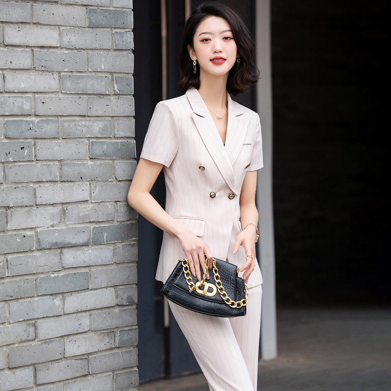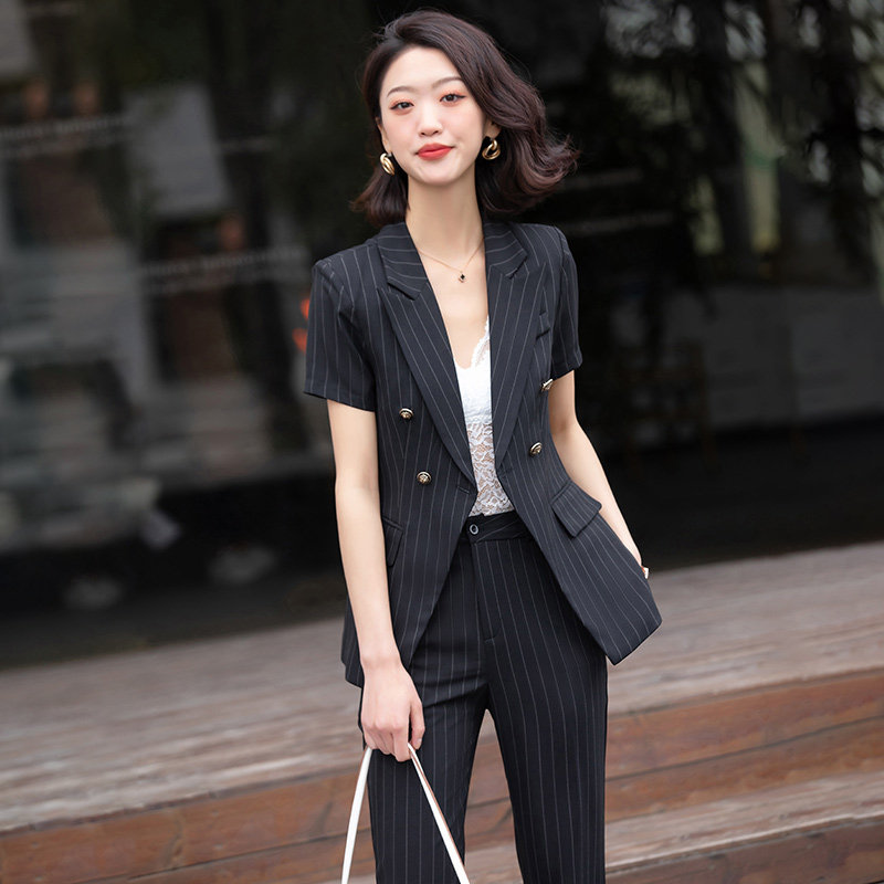 High-end professional suit female summer short-sleeved fashion temperament goddess fan striped suit interview president manager overalls