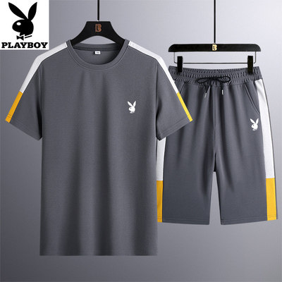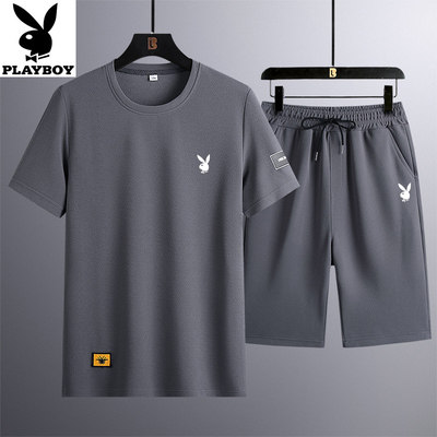 2022 new summer men's short-sleeved t-shirt suit ice silk sportswear shorts casual shirt solid color dad outfit