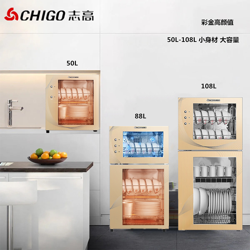 Chigo disinfection cabinet gold stripe household vertical small large-capacity stainless steel high temperature disinfection and sterilization cupboard