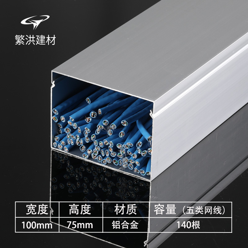 Aluminum alloy wire groove 100*75 large cover Aluminum alloy square wire groove Aluminum extrusion material Lighting engineering wire groove thickening