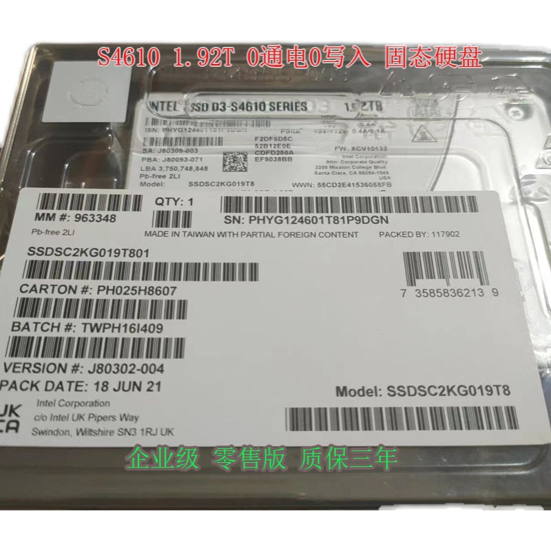 New Intel S4610 S4510 PM883 1 92T Enterprise SATA Solid State Drive