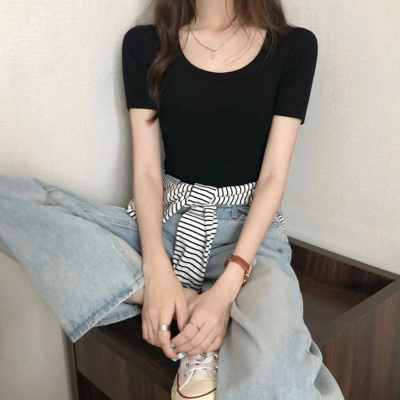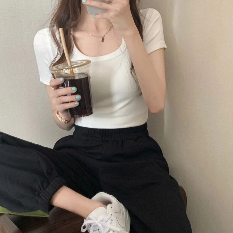 Threaded cotton short-sleeved t-shirt women's summer white short-sleeved slimming 2022 new ins trendy niche design top summer