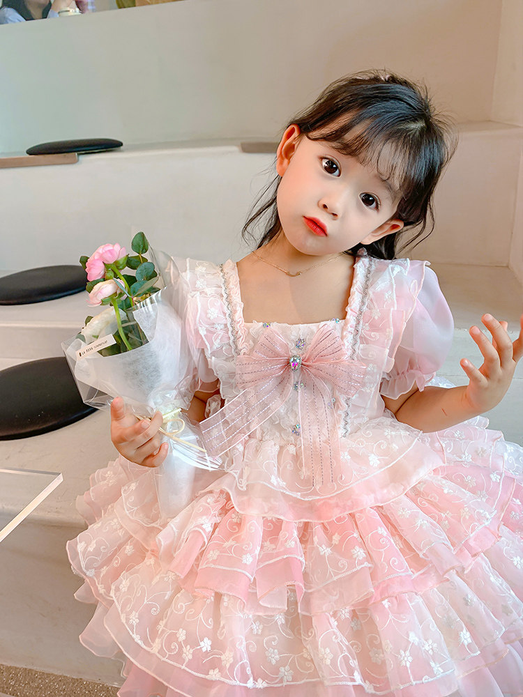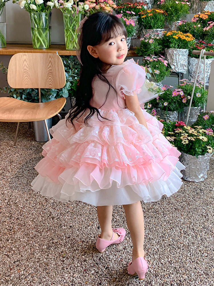 Kids Lolita Skirt High-end Short Sleeve Summer Cake Skirt Pink Sweet Lolita Fluffy Princess Skirt