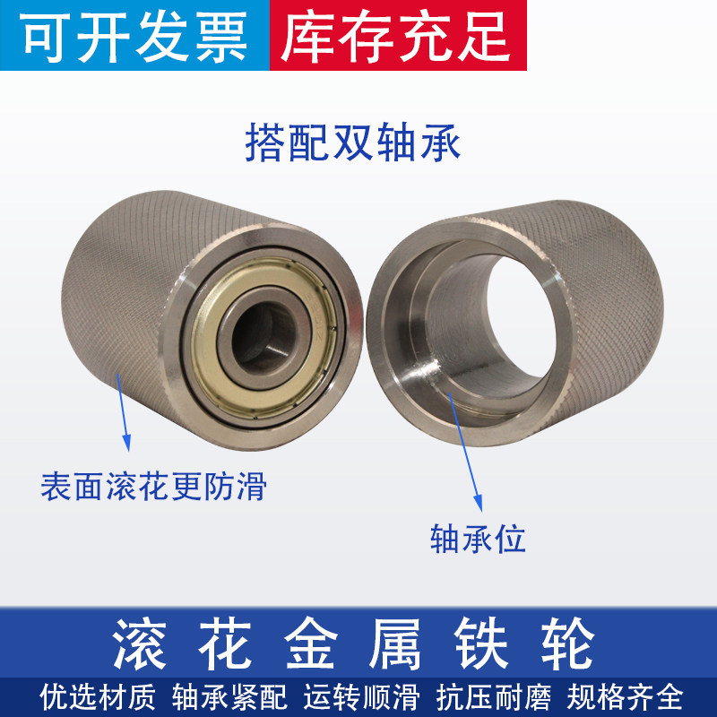 Reticulated knurled driven wheel iron wheel unpowered roller 19-30mm metal double bearing pulley wear-resistant embossing wheel