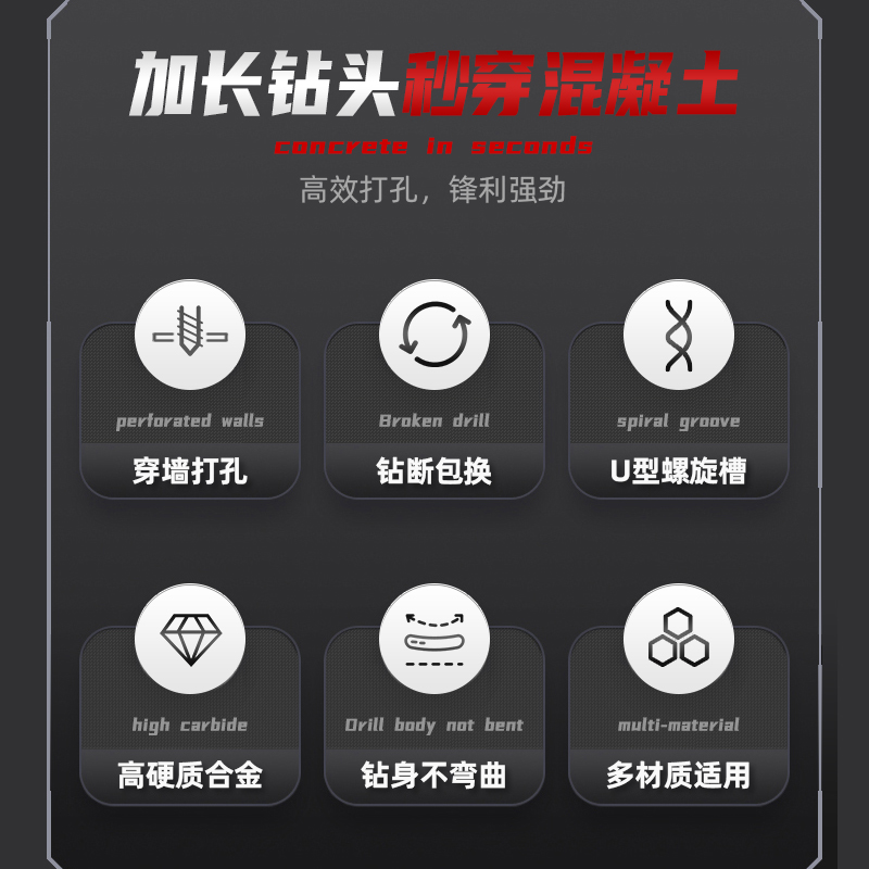 Lengthened shock electric hammer drill round shank square shank wearing wall electric Jong drill High hardness concrete over wall punching head-Taobao