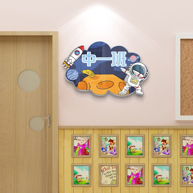 Cartoon Astronaut Themed Classroom Doorplate Loop Creation of wall stickup Kindergarten Creative acrylic class ID cards