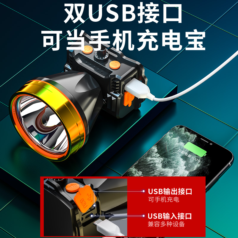 Strong light fishing headlight charging super bright head-mounted hernia ultra-long endurance long range shooter flashlight miner lamp special induction
