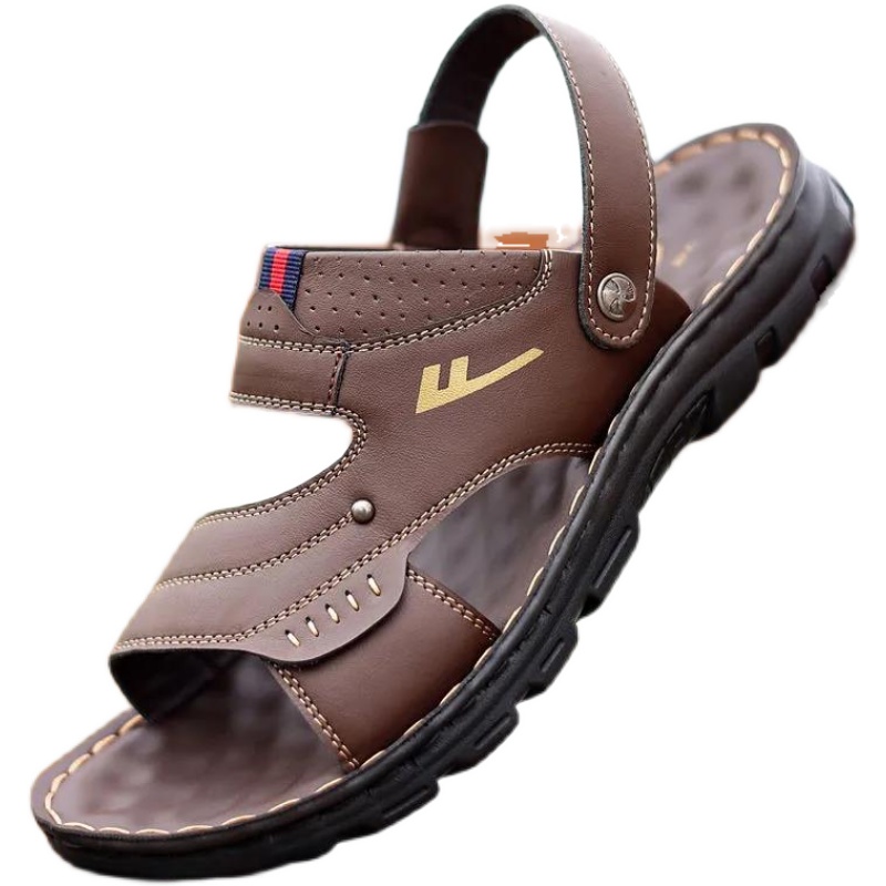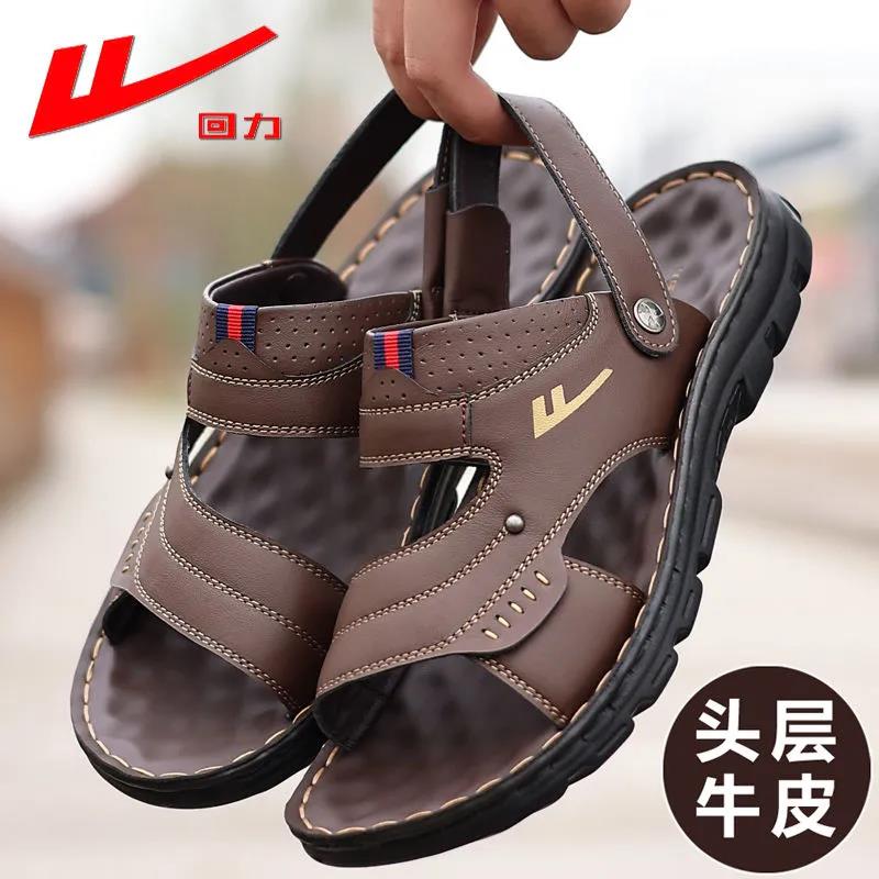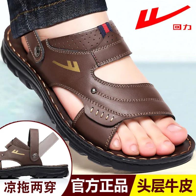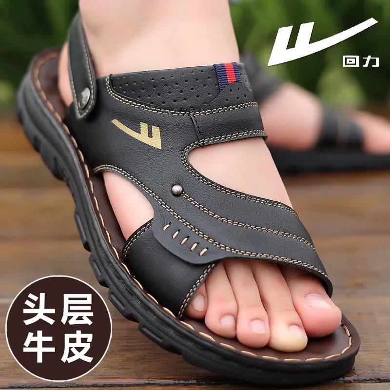 Back Force Sandals Men Genuine Leather Soft Bottom Waterproof Non-slip External Wear Casual Cool Slippers Summer Dual-use Breathable Beach Shoes-Taobao