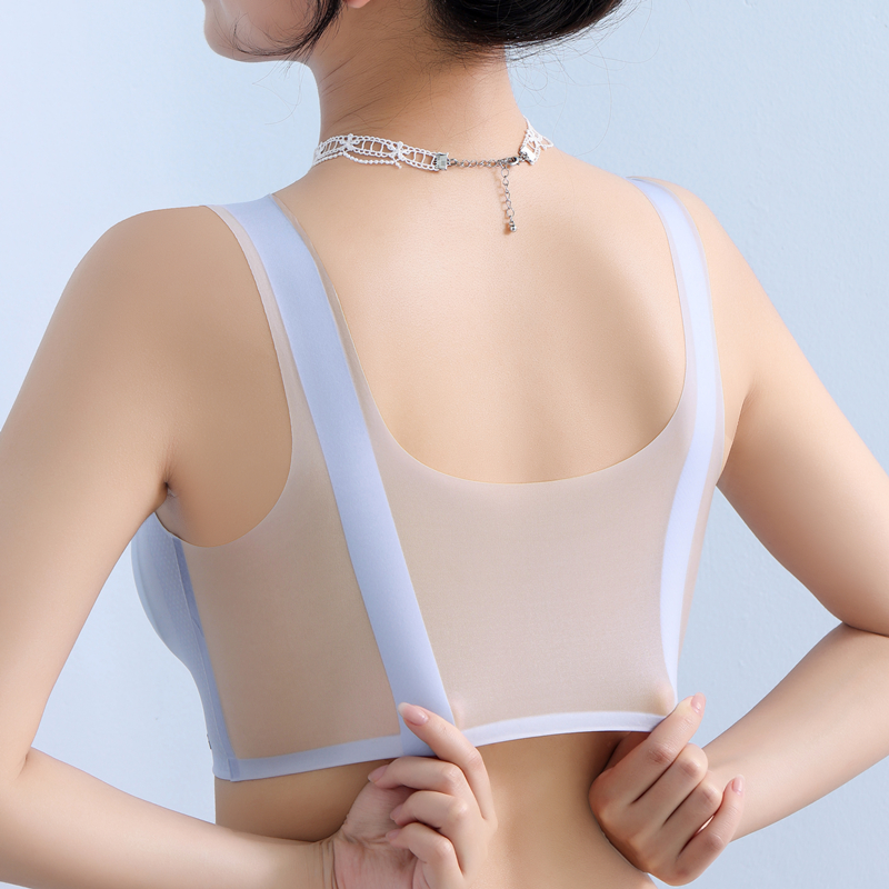 Ultra-thin mesh breathable latex seamless underwear women's no steel ring gathered sports vest beautiful back bra ice summer