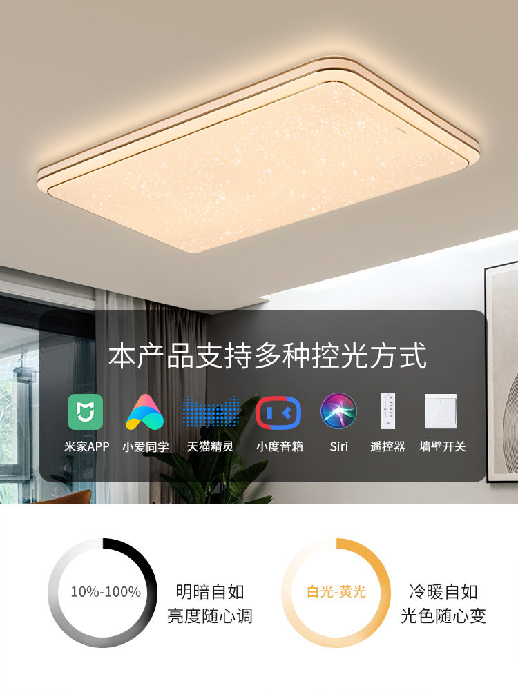 (Limited time special package - 200 yuan more than single purchase) - limited to 100 sets of 128W intelligent dimming and color matching Phnom Penh Square A1 (1 bedroom household) living room lamp Bedroom lamp A