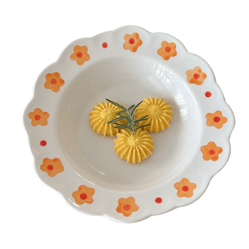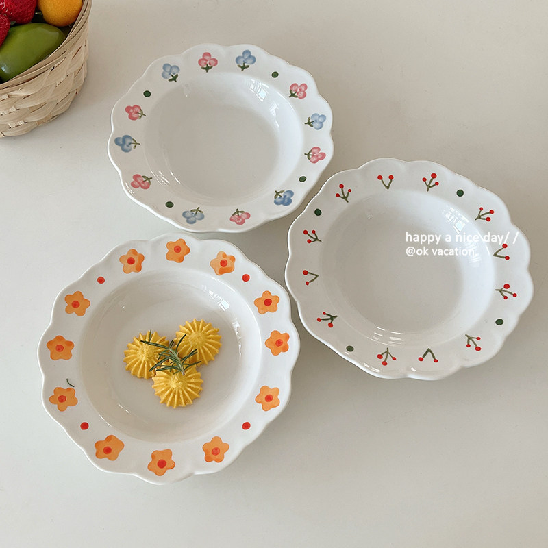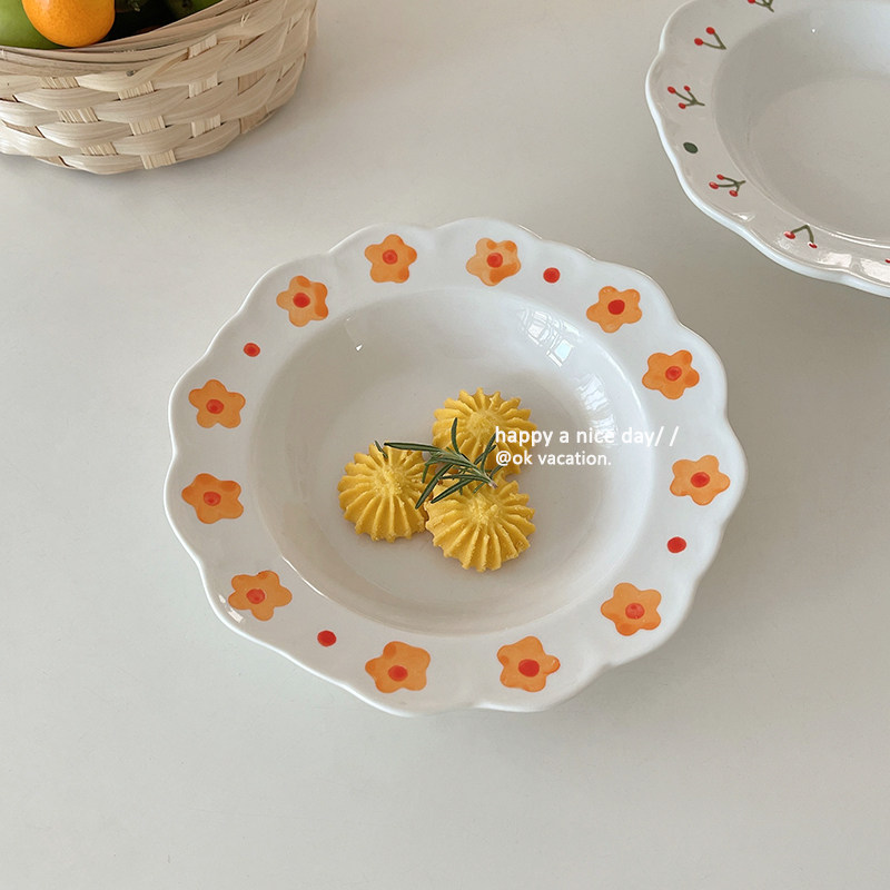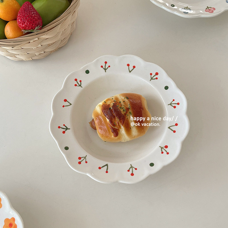 In wind vintage hand drawn cherry pattern straw hat plate pad dessert Western food plate good-looking deep disk