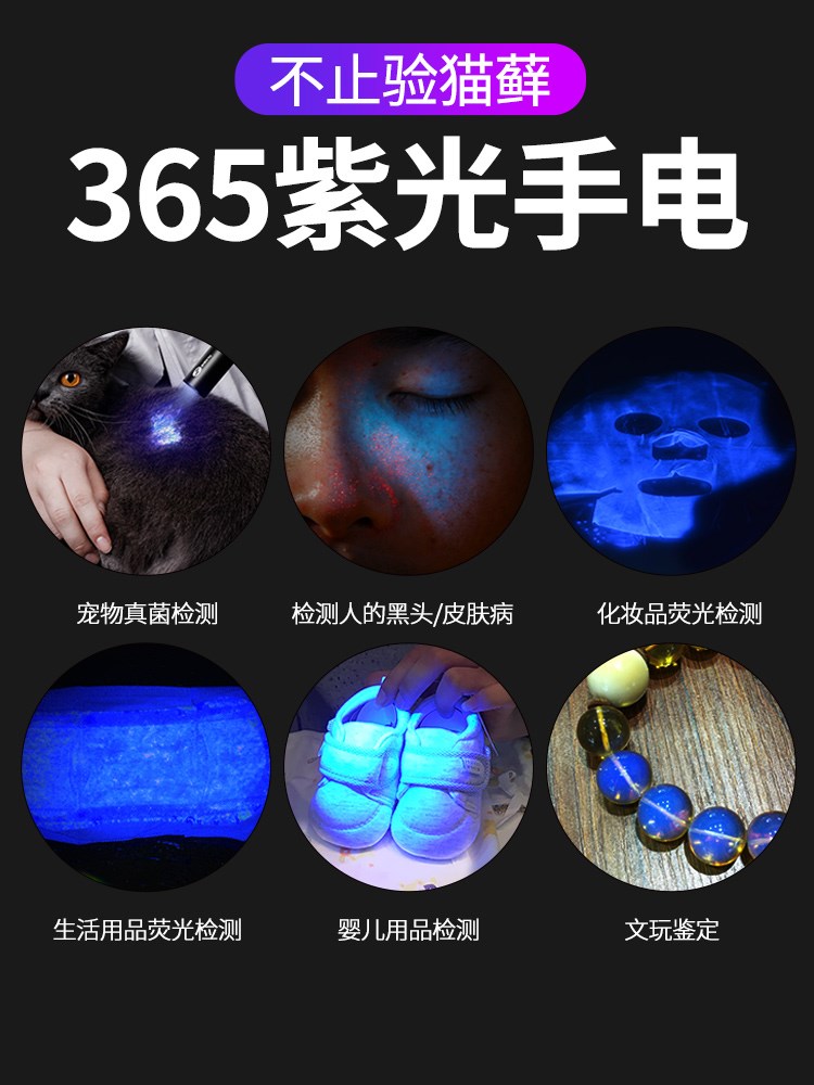 Woods lamp illuminated by the mallets of UV fluorescent fluorescent purple banknote lamp for use