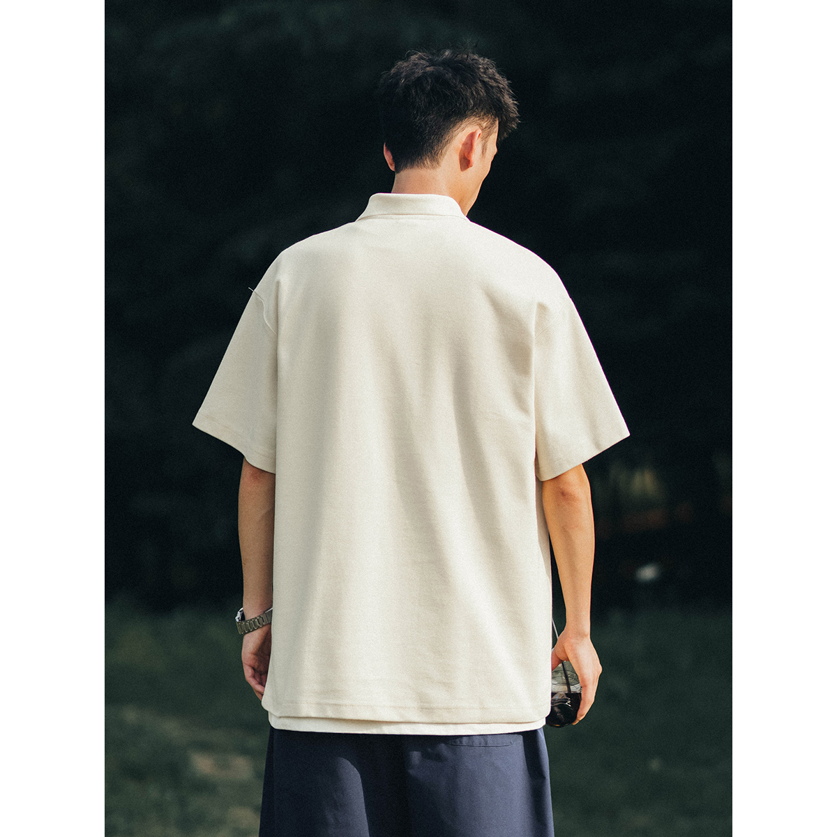 BDLS CityBoy Japanese silhouette casual POLO shirt men's summer new short-sleeved youth loose top