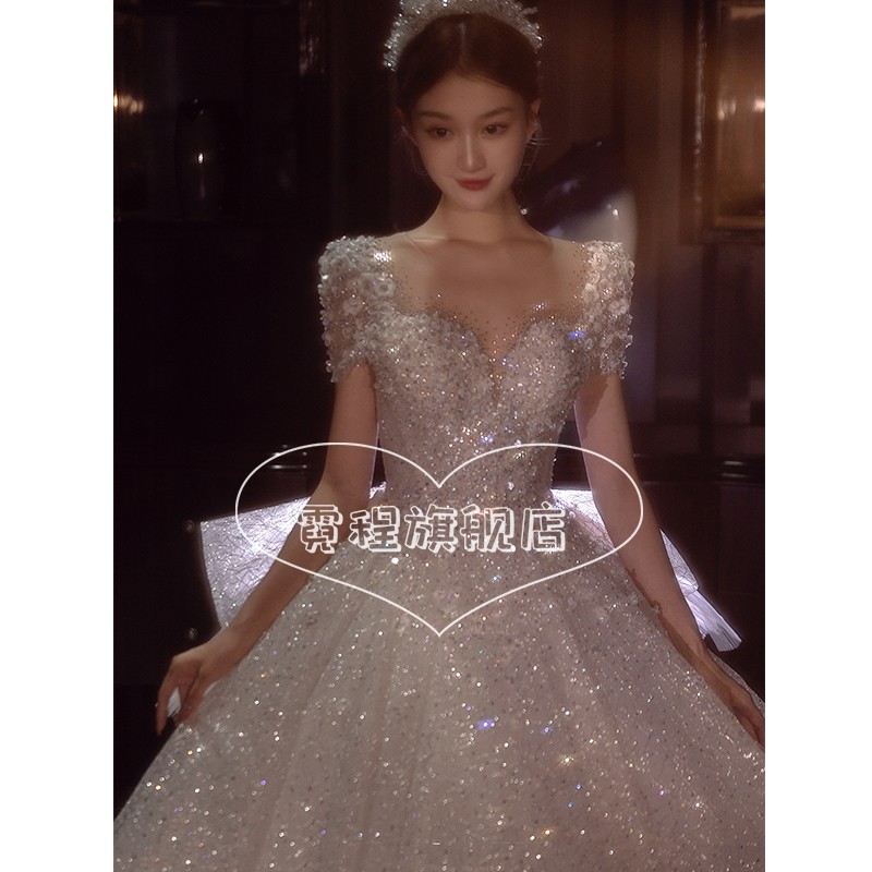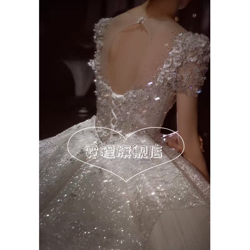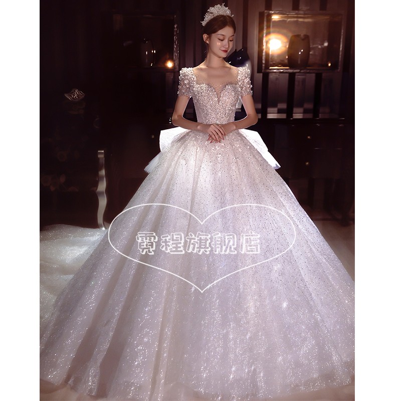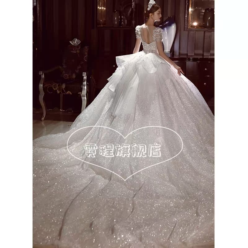 Main wedding dresses 2022 new big trailing brides small subladies French style light V collar summer lined with starry sky