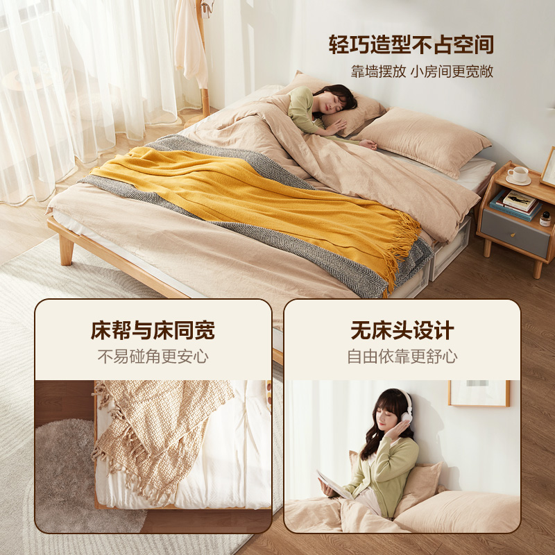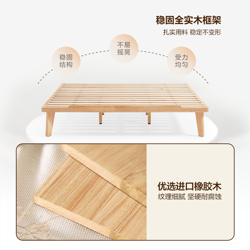 Lin's bedside bed solid wood bed double 1 5 m single 1 35 row skeleton with high foot tatami bed frame-Taobao