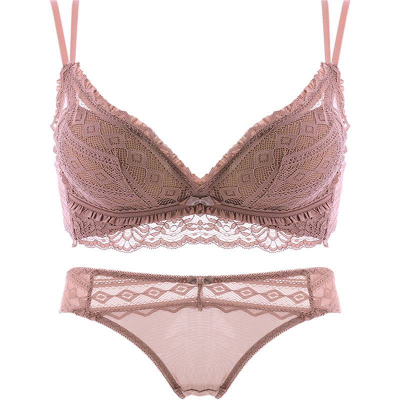 Sexy lace beauty back underwear female no steel ring comfortable small breasts gather the auxiliary breasts on the support adjustment underwear set
