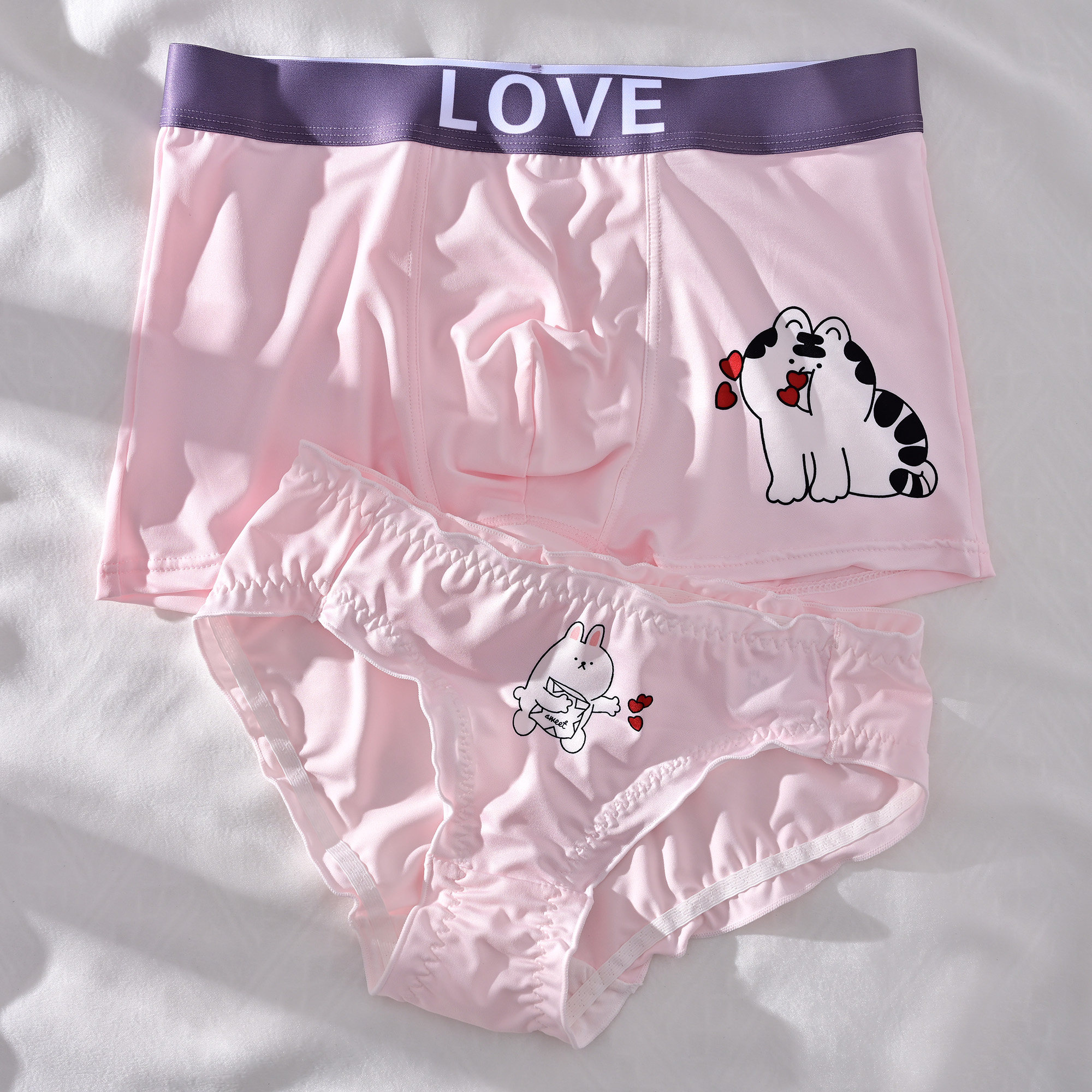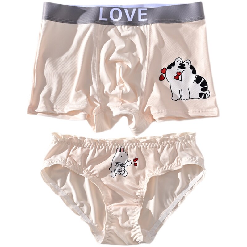 Anchao couple's underwear one man and one woman's milk oil color cute tiger cartoon sexy kit lingerie pure cotton crotch