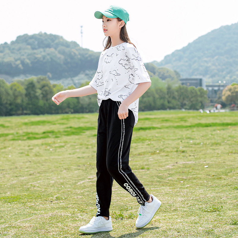 Next inss Girls Sports Kit 2022 Summer New Kids Fun Casual Pullover Two-Piece Set