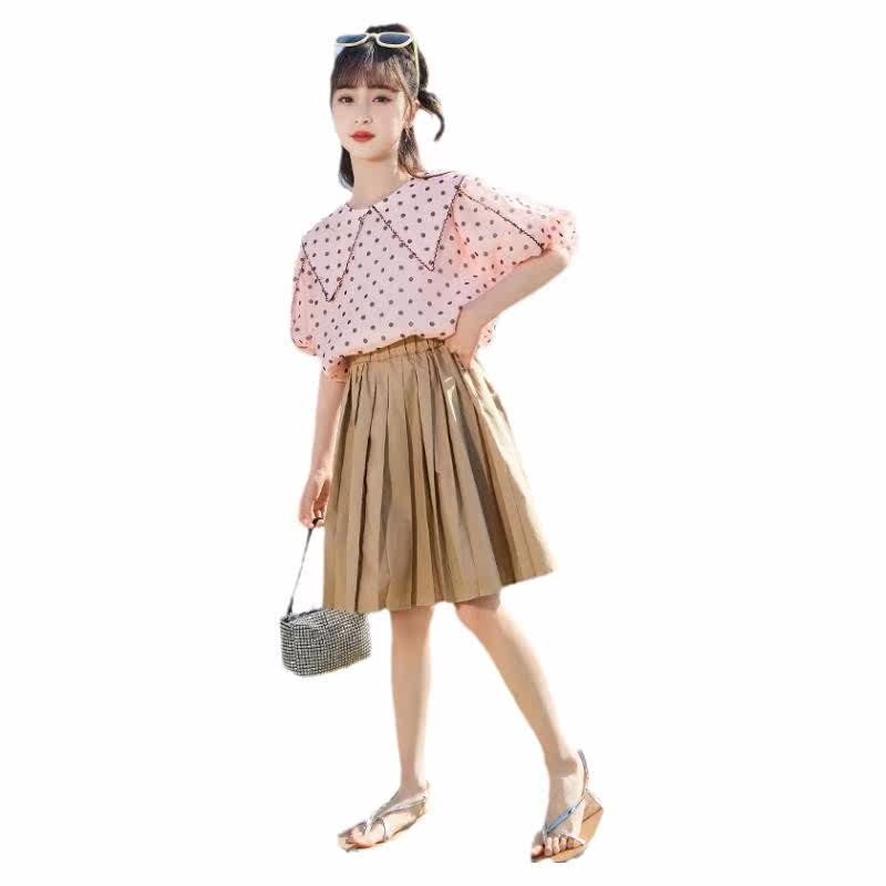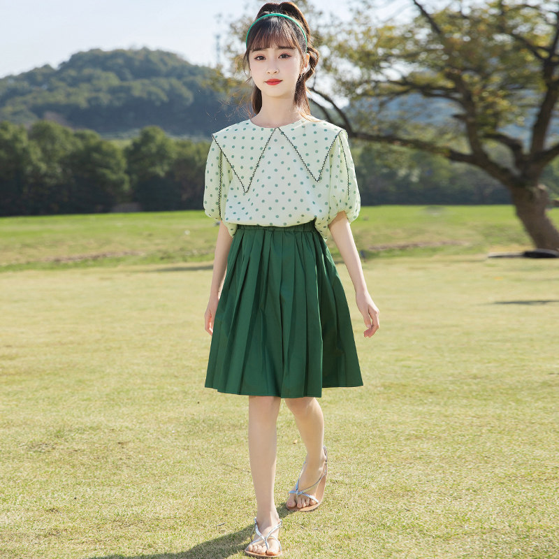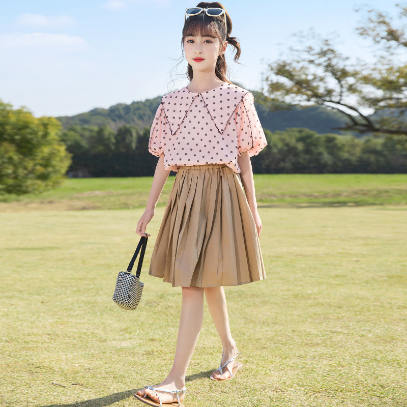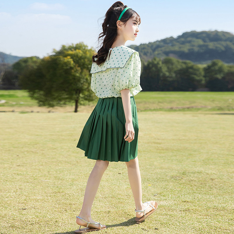 Next Inss Girl Short Sleeve Suit Dress 2022 Summer Dress New CUHK Youngster Han Edition Children Thin two-piece set
