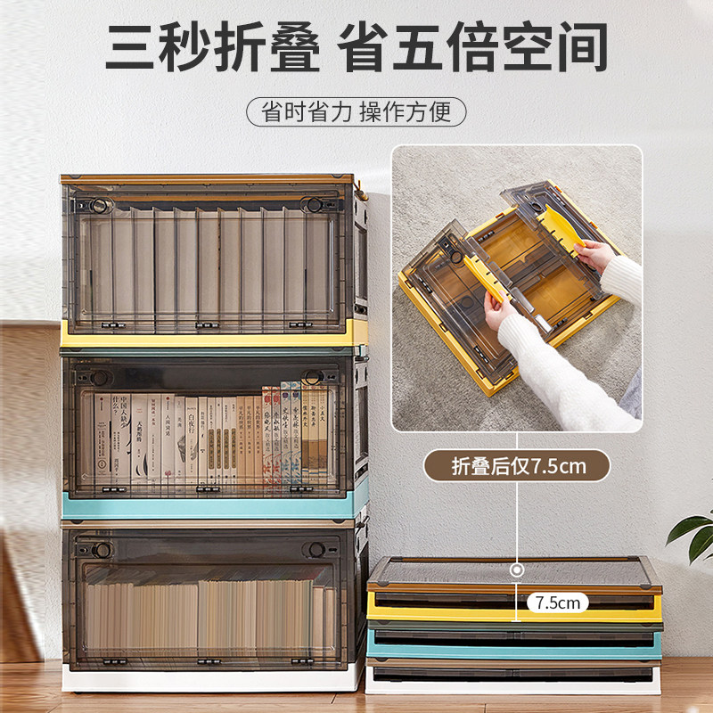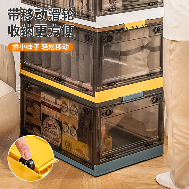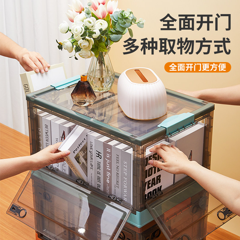 Front and rear double door transparent white (foldable large capacity with pulley) front and rear double door open transparent green (foldable large capacity with pulley) front and rear double door open tea color white (foldable